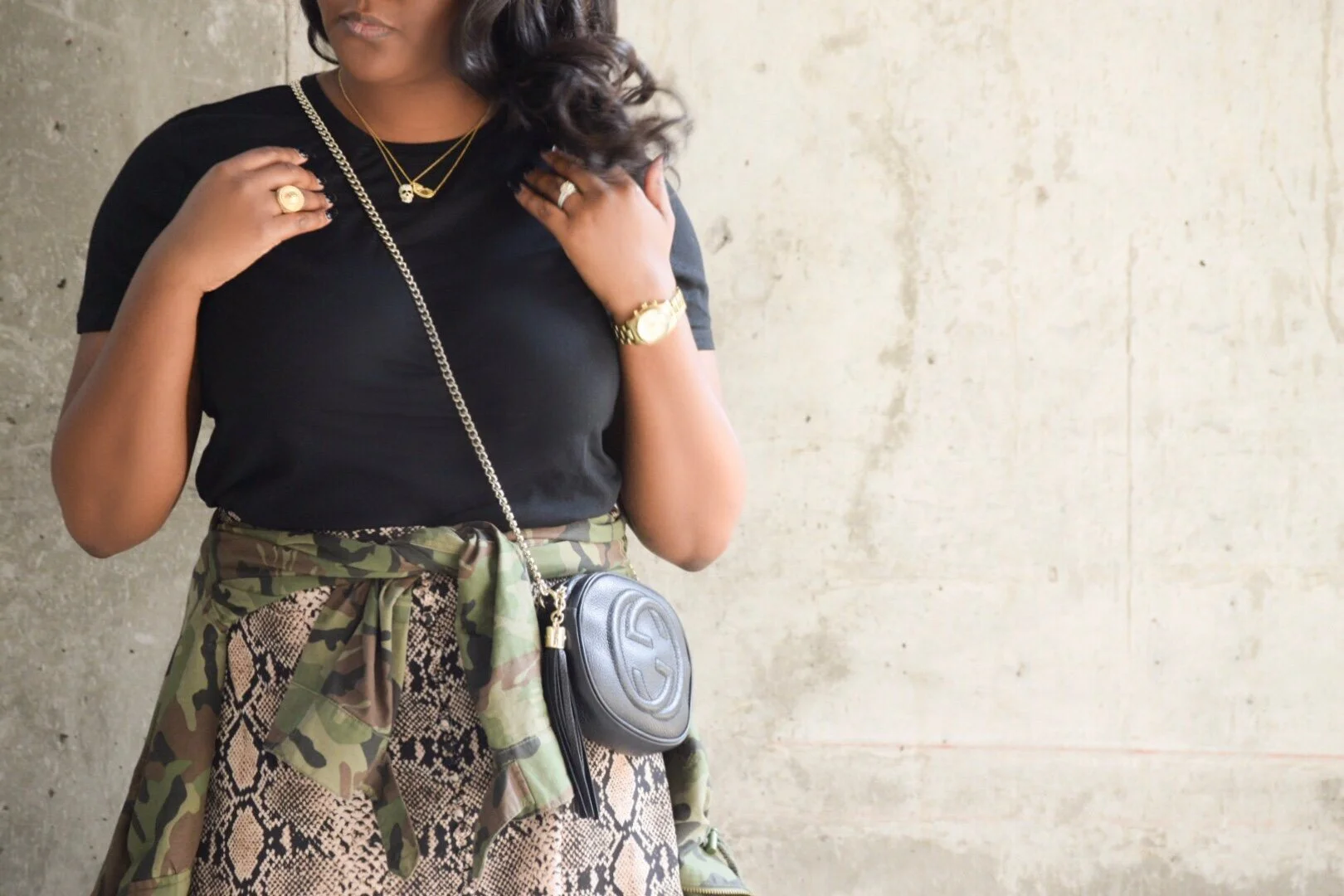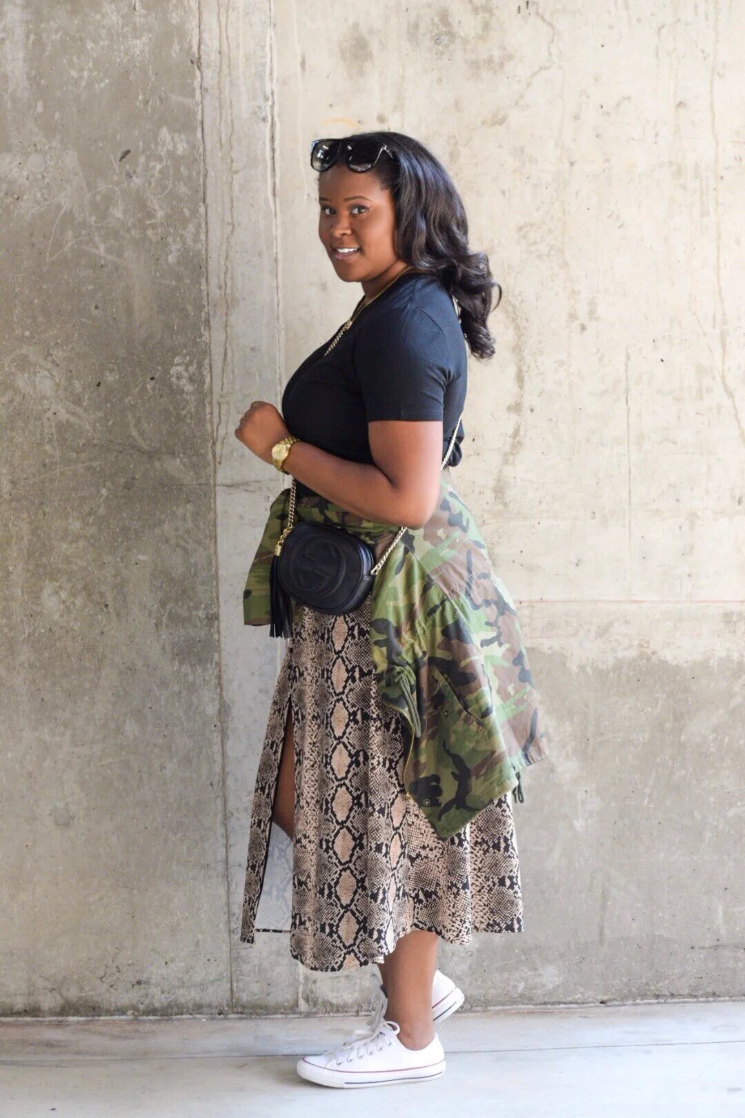 If you haven’t noticed, snake print is a definite fall trend…duh! I mean it’s everywhere. Today I wanted to show you guys how I styled one of my favorite snake print pieces, this Zara skirt. I’ve had it since last year and decided to wear it on a casual Saturday. I paired it with my favorite camo jacket because I love mixing prints together! Remember, fashion can be as fun and you want it to be!
