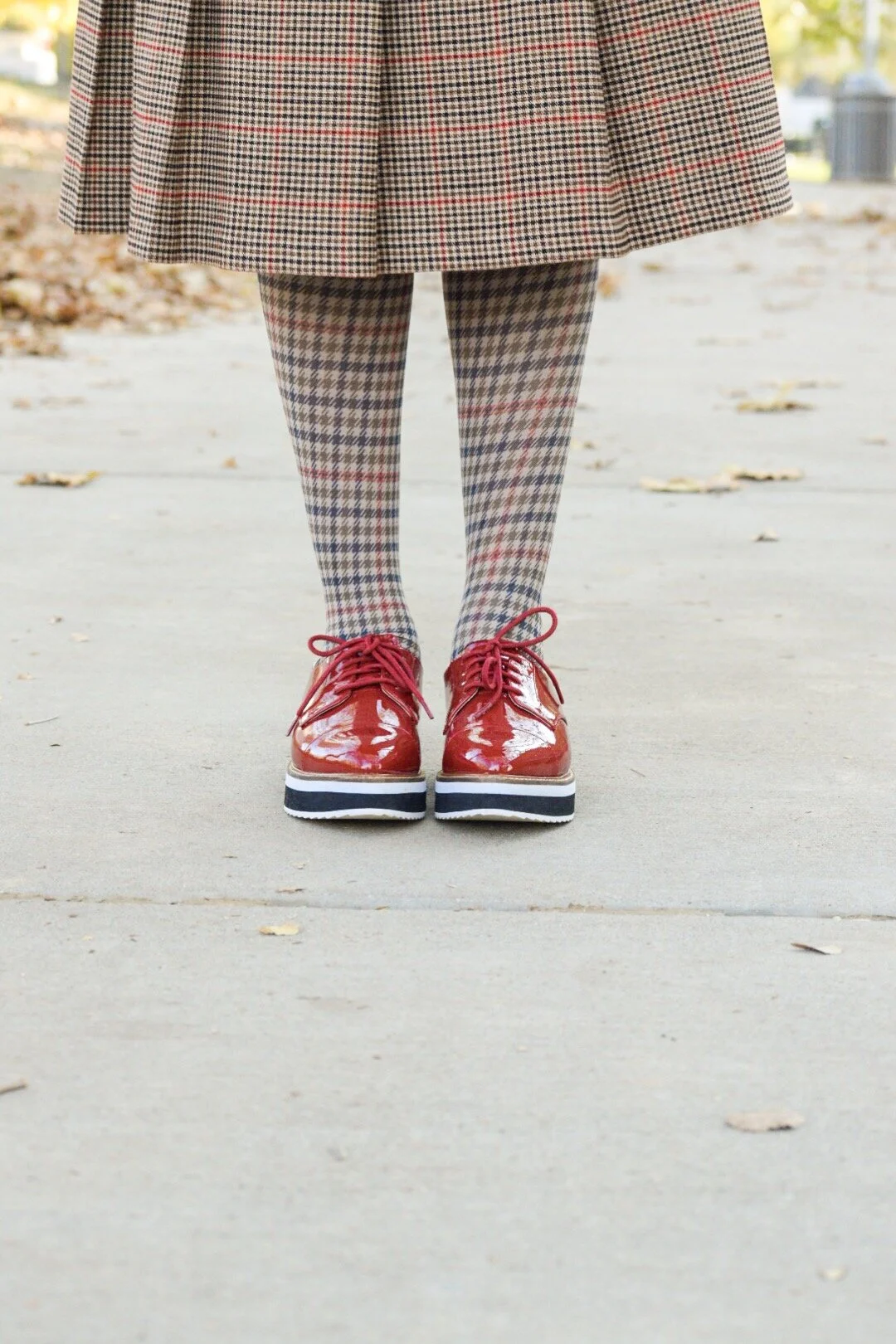 Welcome to December! Before I post loads of Christmas inspired content, I wanted to finish out my Asheville vacation looks. And yes, it’s another Atlantic-Pacific x Halogen look! I was lucky enough to get this skirt, tights & shoes back in October/November and have been dying to wear them! These platform oxfords are so comfortable and made walking around Asheville so easy. Mark my words, I WILL be purchasing more of these shoes in many colors. I also love the plaid on plaid look. I screams fun and fashion! And I most definitely twirled my way around the city in this fun skirt. I like it because it can be dressed up or down. A pleated plaid skirt can go a long way in your closet. That’s why I love this collection so much! It’s so much fun to mix and match and play in clothes.