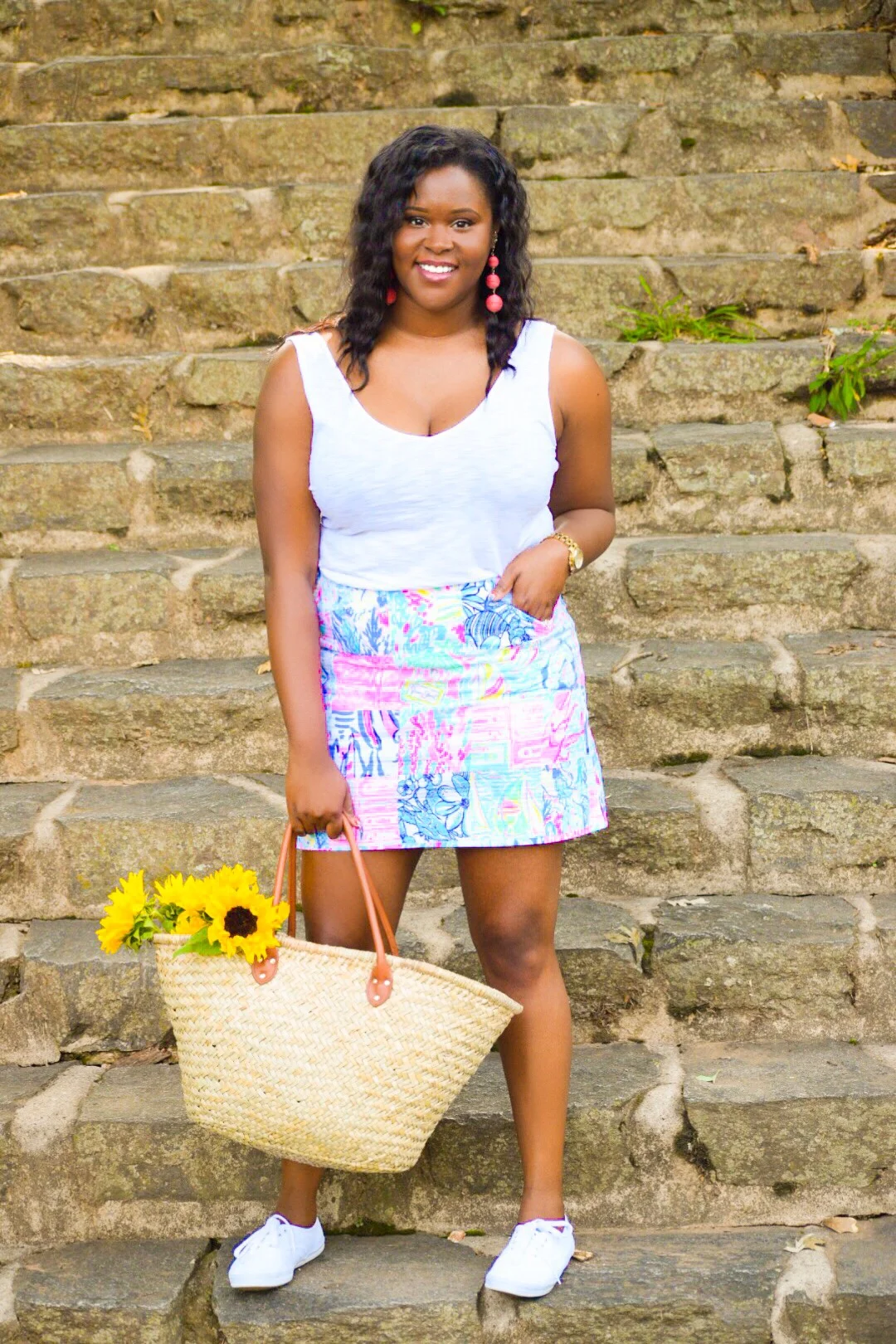 It’s the summer and of course that means lots of Lilly for me. But, I’m sad to say I haven’t been purchasing a lot of Lilly Pulitzer recently. However, when I saw this Summer Remix print appear, I had to get it! This print combines many different Lilly prints of the past to create something fresh and new. I mean, how cute is this skort I’m wearing! I will be living in this the remainder of the summer!