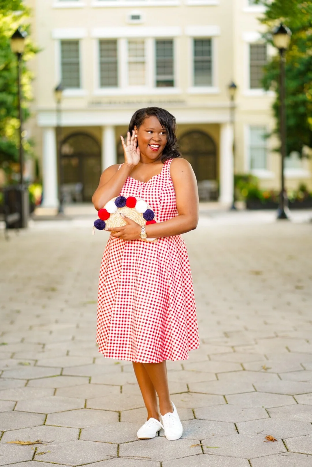 Amazon Gingham Dress, Kids, Pom Pom Purse (Old)