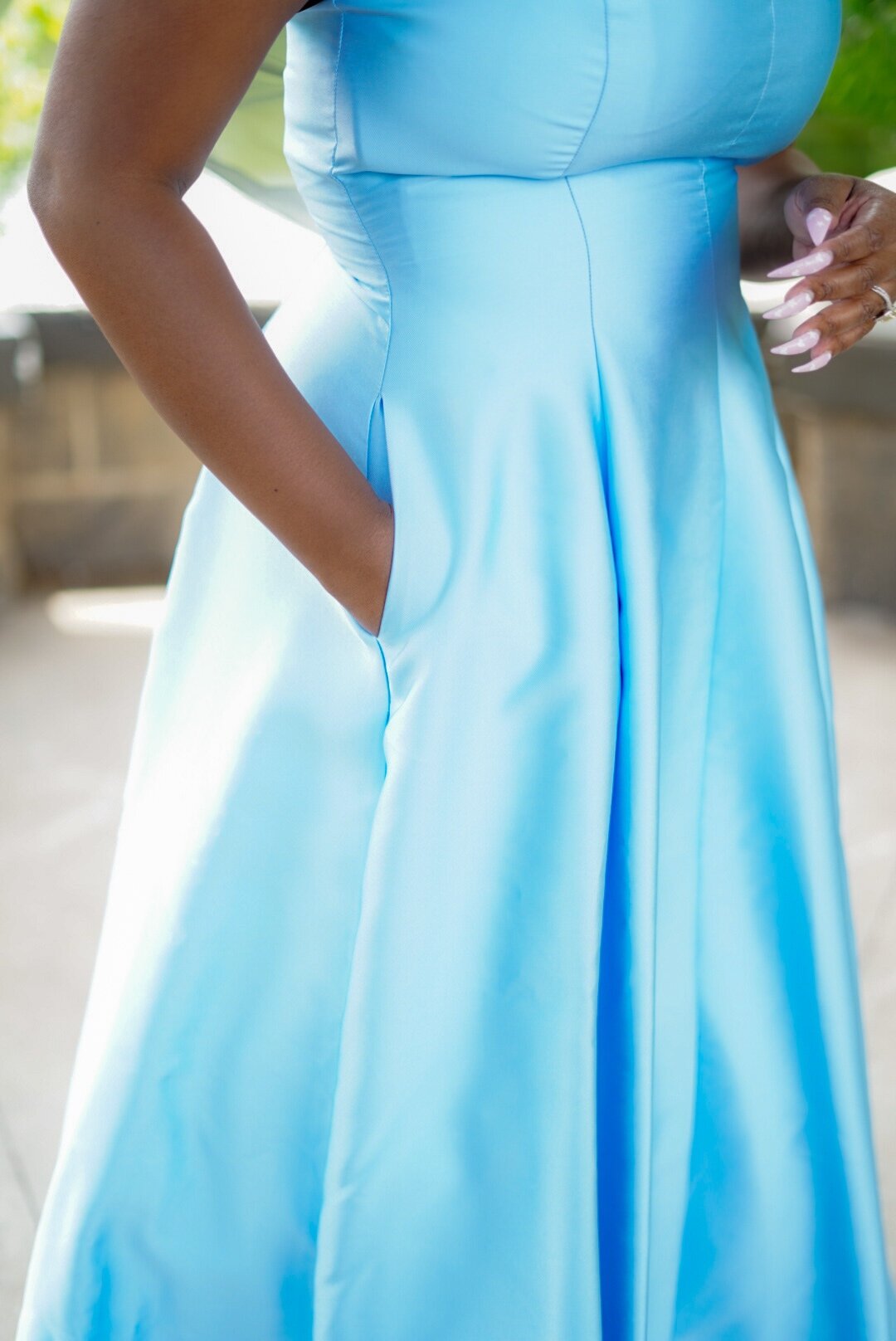 For my bound, I chose this simple blue dress from Dillards…and yes, it has pockets! My shoes are actually from my wedding, which I thought would be appropriate. Since the dress was so simple, I made an elaborate choker out of ribbon and put a giant tulle bow on the back. I loved this look so much! My outfit details are below.