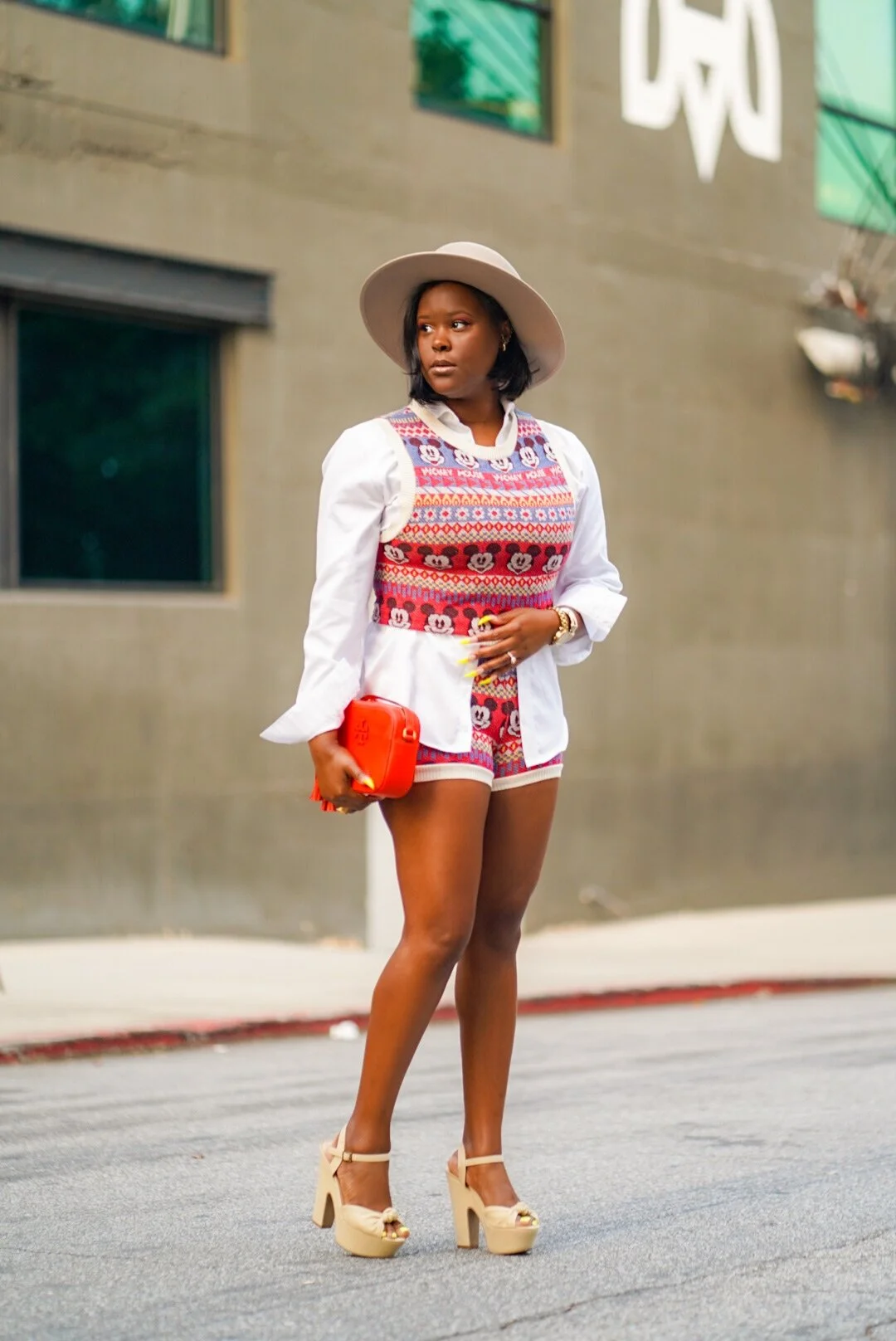 Since the shorts are so short, I paired it with my husbands long sleeve button up. I threw on some platforms to elongate my legs and my go to favorite hat. I like the way it came out. I still feel like a larger sizer would have been better, but my husband assured me my booty wasn't hanging out.