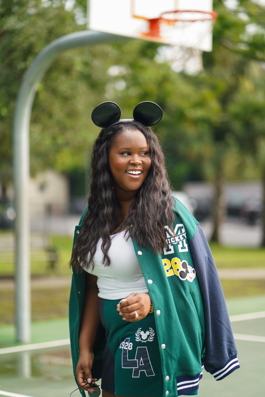 In my previous post, I shared my love for the latest H&M Mickey pieces. Well, I ended up placing two orders that day. The second was for the outfit below. See, I am a sucker for matching sets, co-ord sets, suits, etc. I love the matchy matchy look and sets are so much easier to style and wear. I saw this jacket and shorts and thought how casual and sporty I would look wearing it. Since my next Disney trip isn’t until the end of September, I figured why not bust this look out and run around Charleston wearing Mickey ears.
