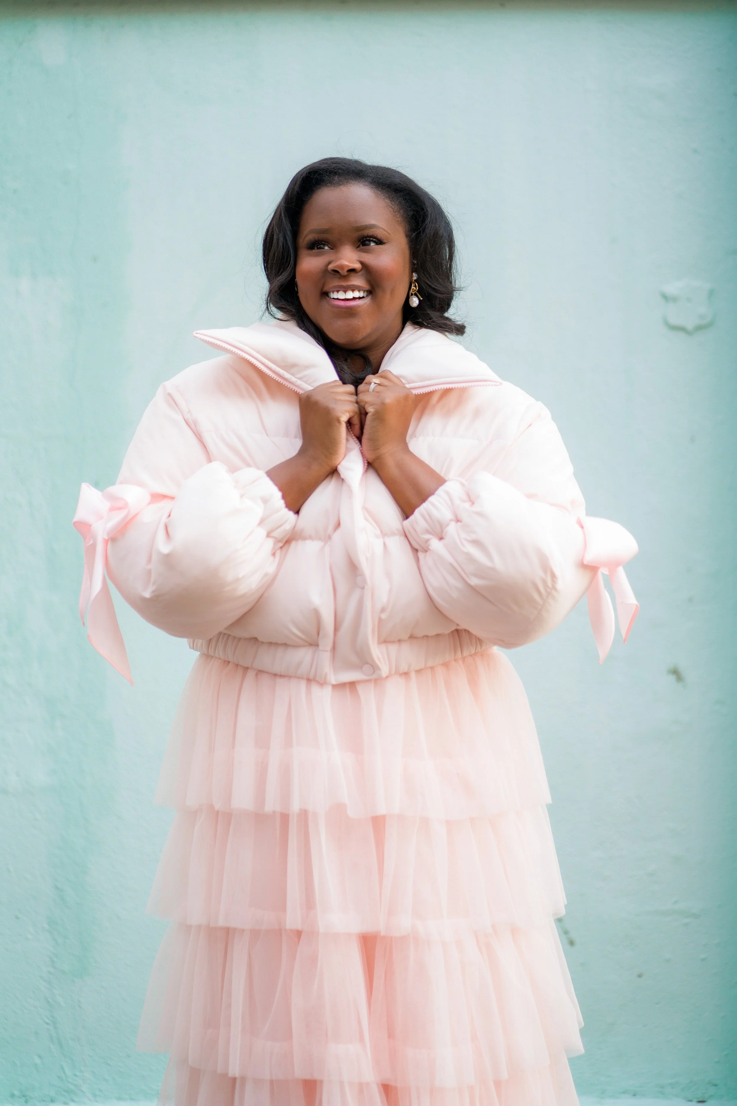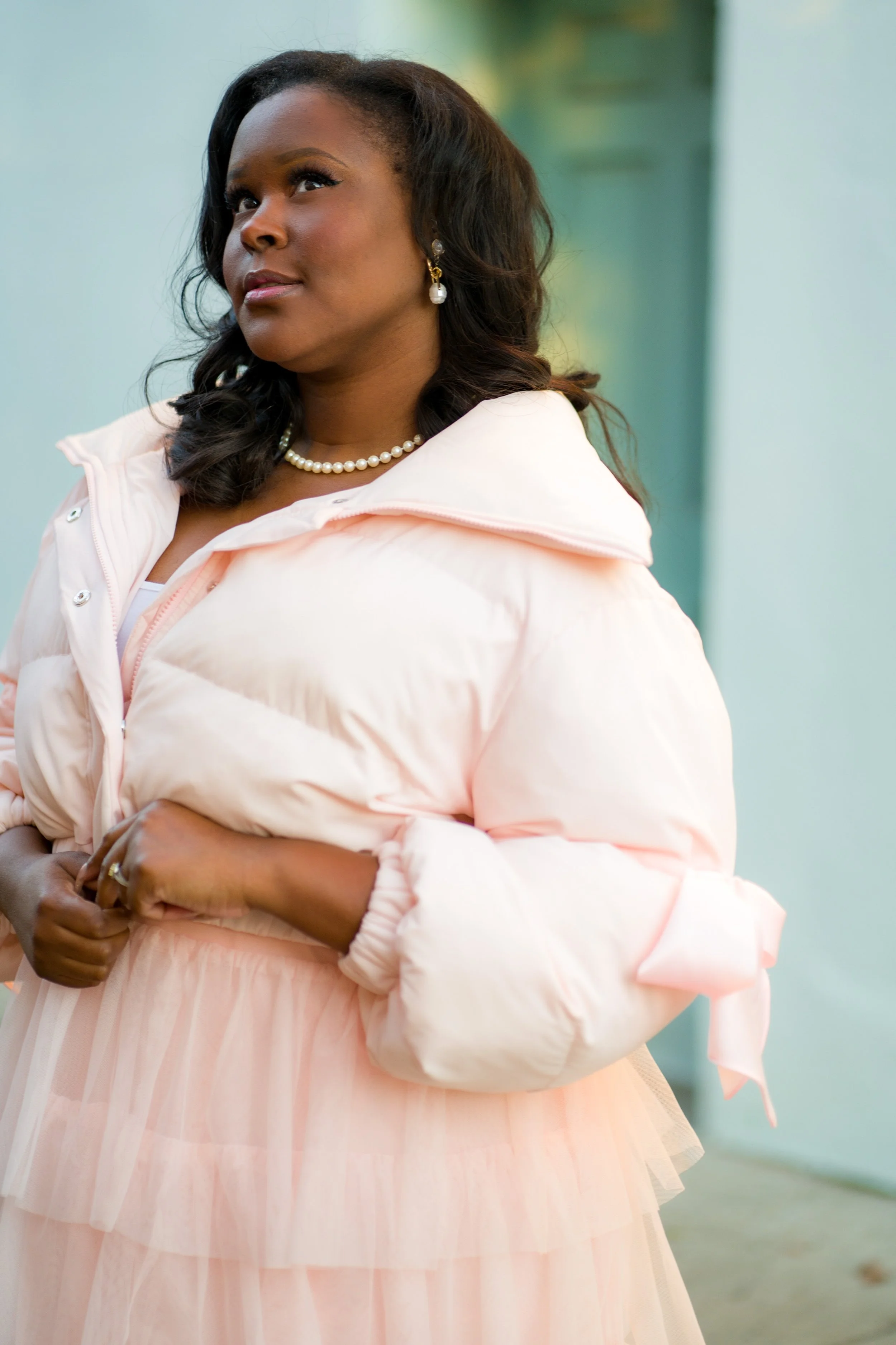 Anyway, back to this awesome puffer vest. I styled this jacket with my favorite tiered ballerina skirt from Halogen x Atlantic-Pacific. I swear this skirt goes with everything in my closet. I thought since it’s for the blog, why not go all out. Would I wear this look out for a casual day out, no. Realistically I would pair this jacket with my favorite cropped straight leg denim jeans, a plain white t-shirt and either sneakers or pink loafers. But, it is more then okay to be extra on The Creole Peach. Below I have linked this awesome jacket. How would you style it?